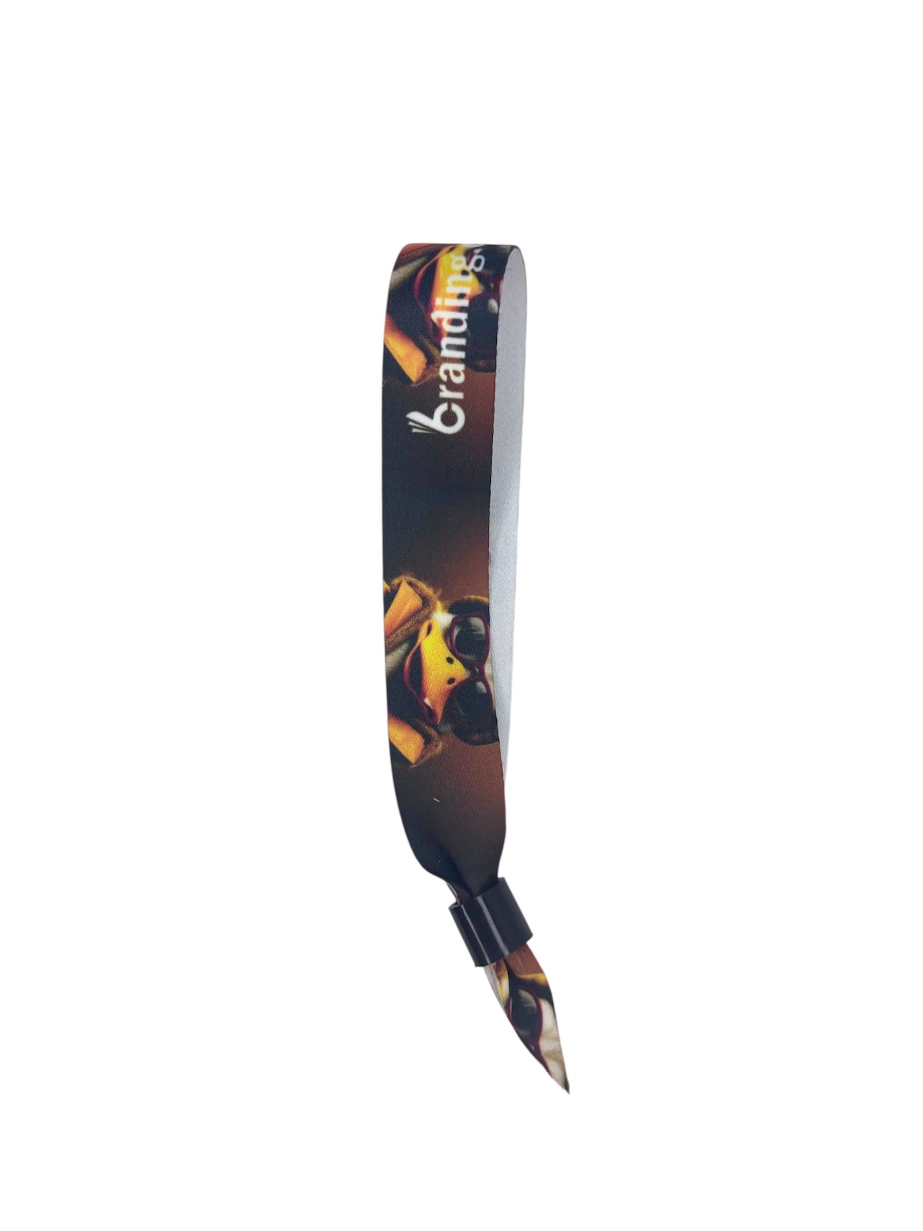 Our satin fabric sublimated wristbands offer a smooth, high-quality finish perfect for events, festivals, and brand activations. Sized at 353mm x 20mm, these wristbands can be printed in vibrant full colour, either single sided or double sided. Each wristband is secured with a non-reversible ferrule, available in black or white, ensuring a secure, tamper-proof fit.